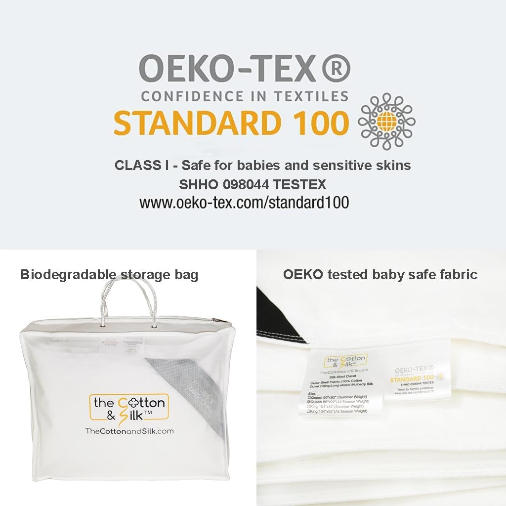 - [MATERIALS] The filling is made from 100% premium long-strand mulberry-silk, which is organic, ultra soft, smooth, breathable, ultra durable, temperature-regulating, and body hugging. The shell is made from 100% premium cotton.